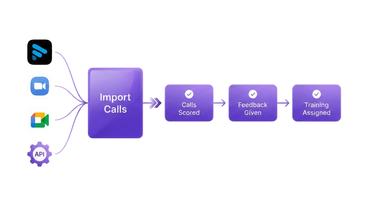 Import every sales call you take into Kendo for scoring, data, and coaching