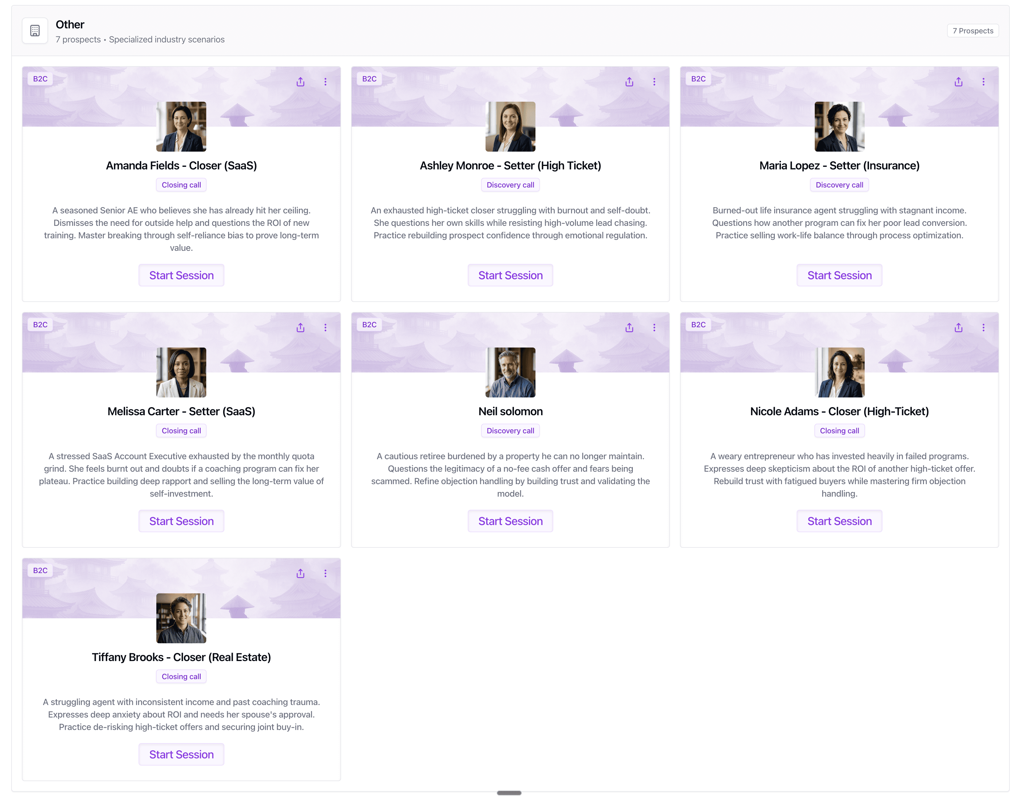 Train your sales team with customizable AI prospects