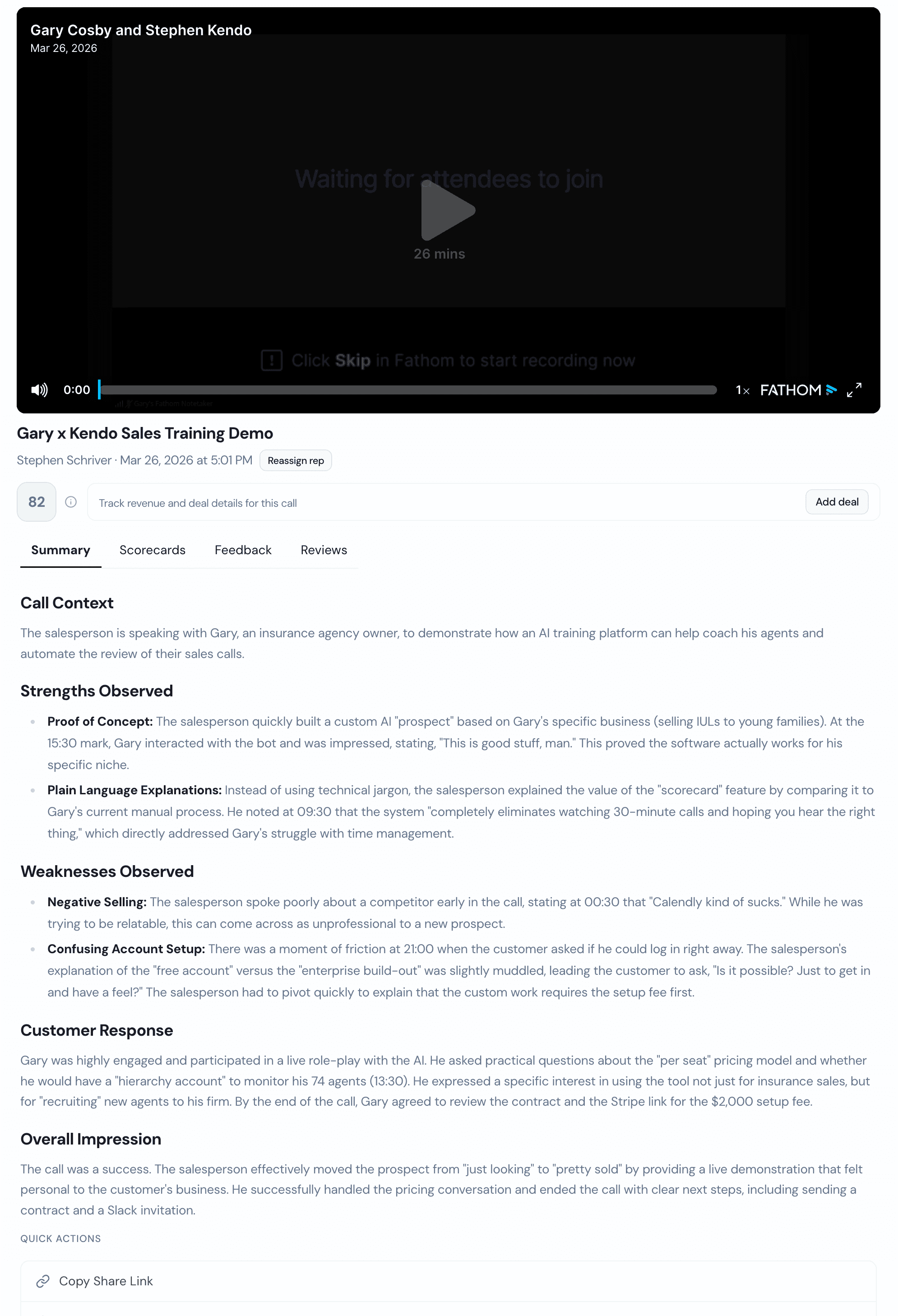 Save time reviewing calls with automated summaries, scorecards, and feedback.