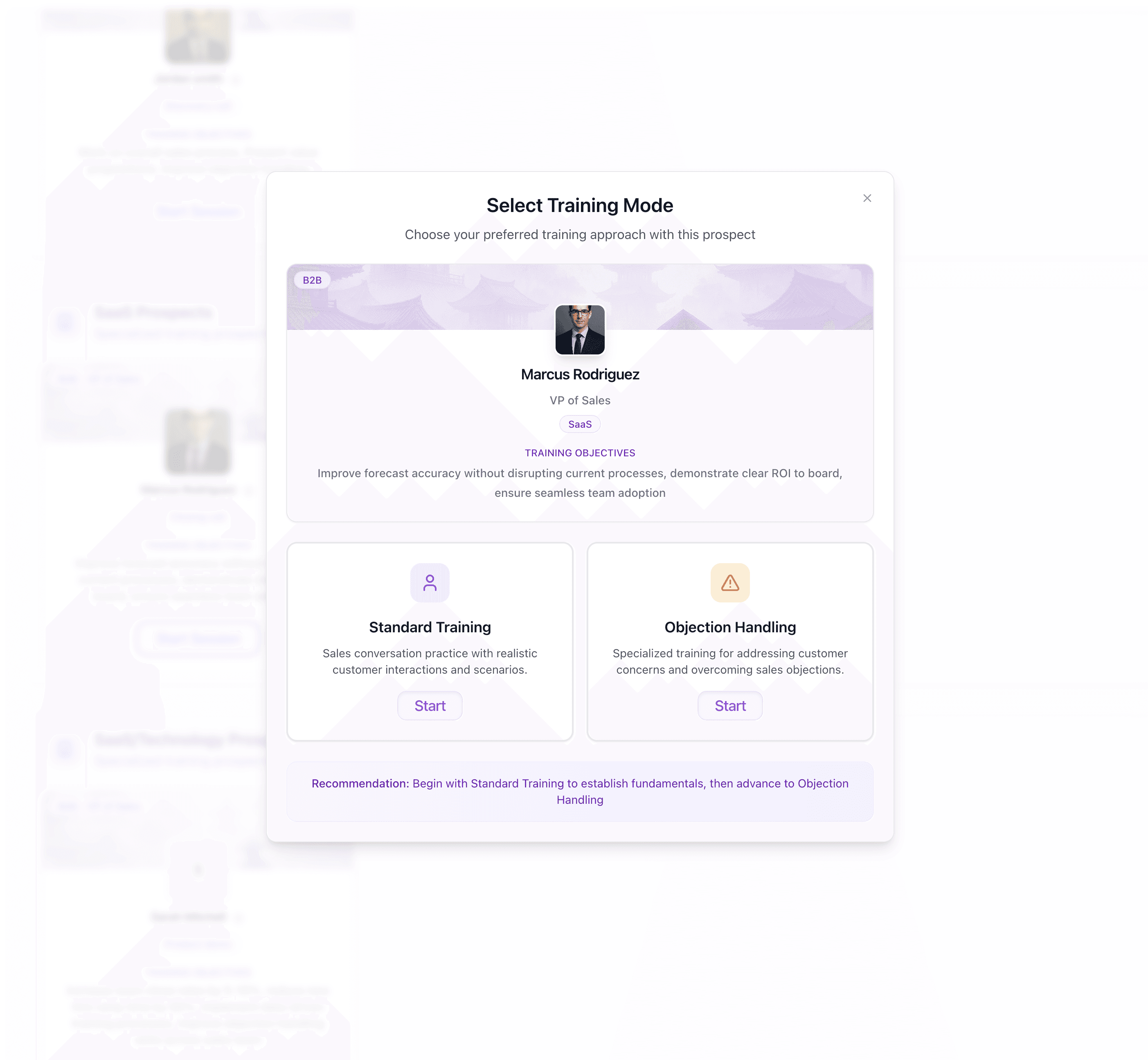 Train your sales team at scale with personalized 1 on 1 roleplay against human like AI prospects